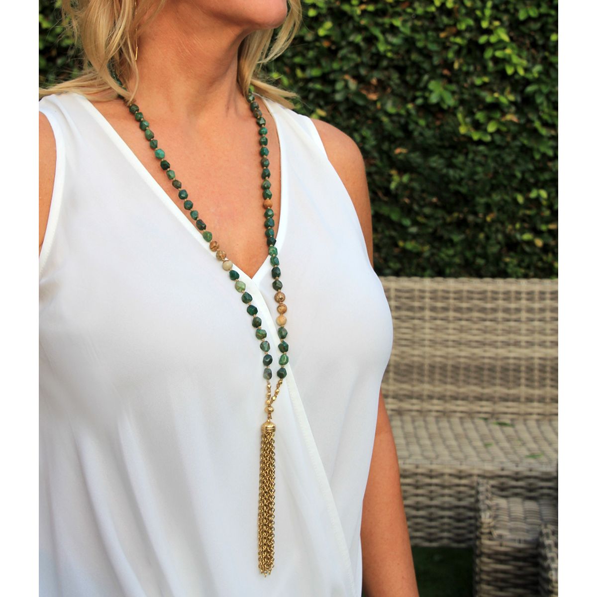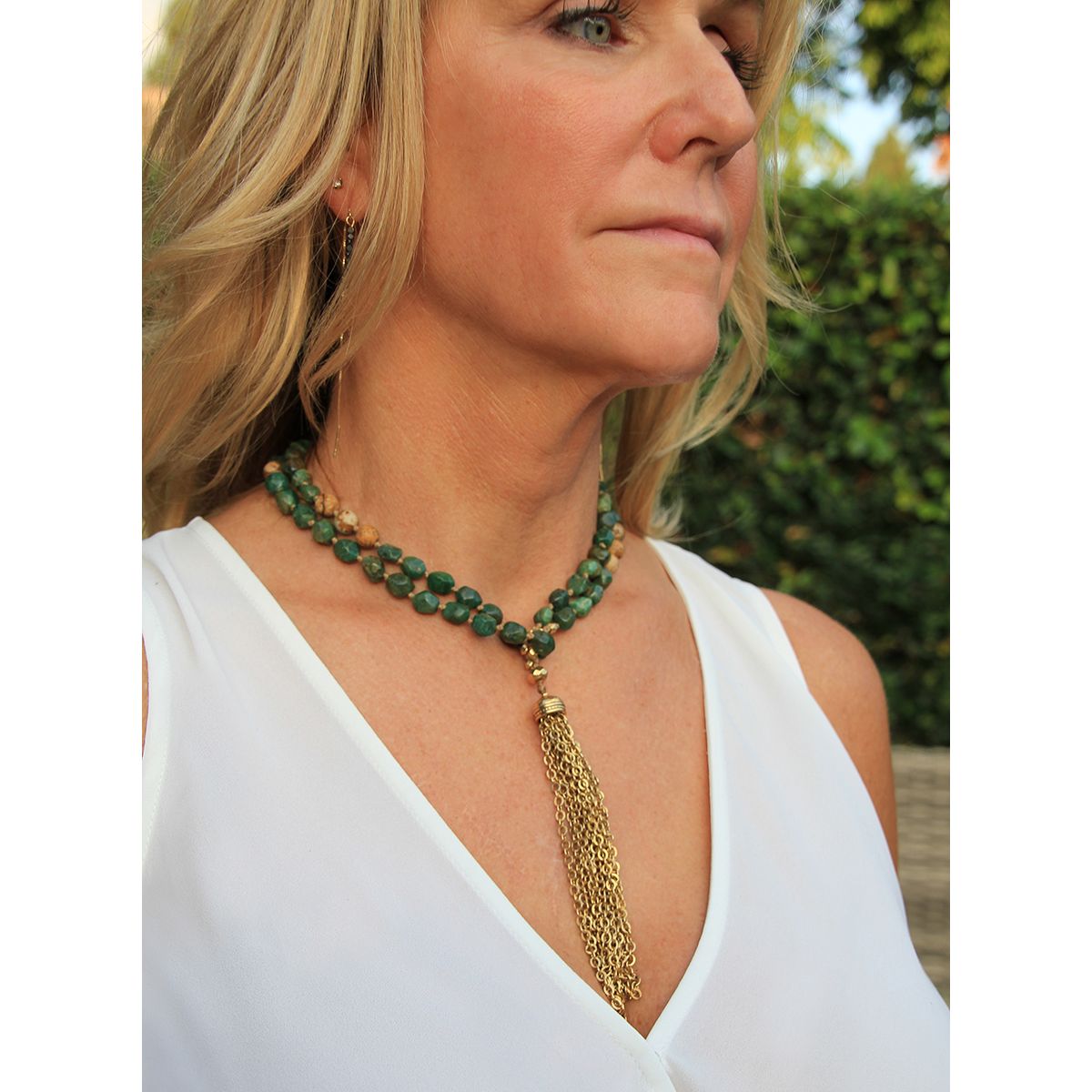 | Styling Tips | There are two equally great ways to wear this style hero: Worn full, it creates a look of elongation, perfect over tunics, sweaters, or as the longest piece in a layered necklace look. The other option is to wear it short, pulling the tassel end through for a style that is part choker, part lariat, 100% cool and versatile. We especially like the way this looks with a V-neck or open collared shirt. Gravity keeps the tassel threaded through, but take care not to shimmy 'n shake it off if you're getting your dance groove on. |
