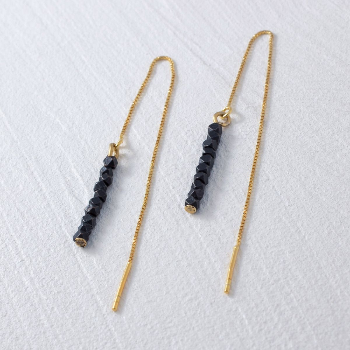 Mission accomplished. I started with simple black brass + gold vermeil threaders and have been moving my way through the stone color spectrum. Threader earrings offer the perfect real estate to showcase a REALLY beautiful stone, catching the light and framing your gorgeous face. And... I'm not ashamed to admit I get a wee bit obsessed stroking my threader chain throughout the day. Don't judge - you'll see, it's habit forming.