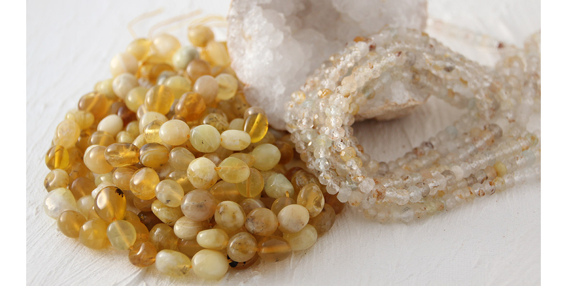I gave myself a challenge to find and use yellow stones. The yellow opal is really unusual, some stones transparent, some milky. The contrast with the faceted quartz is really interesting to me.